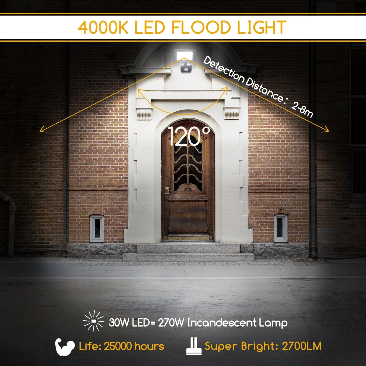 30W Foco LED Con Sensor Movimiento, 2700LM, IP65, 4000K, Aigostar