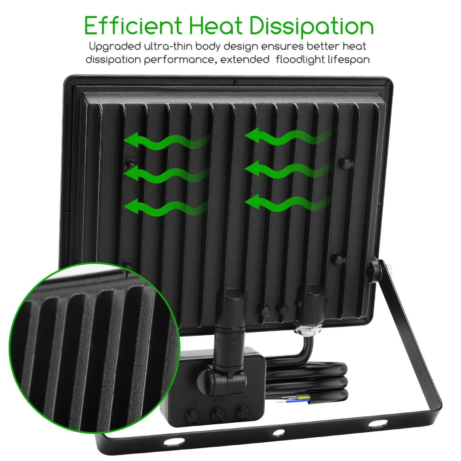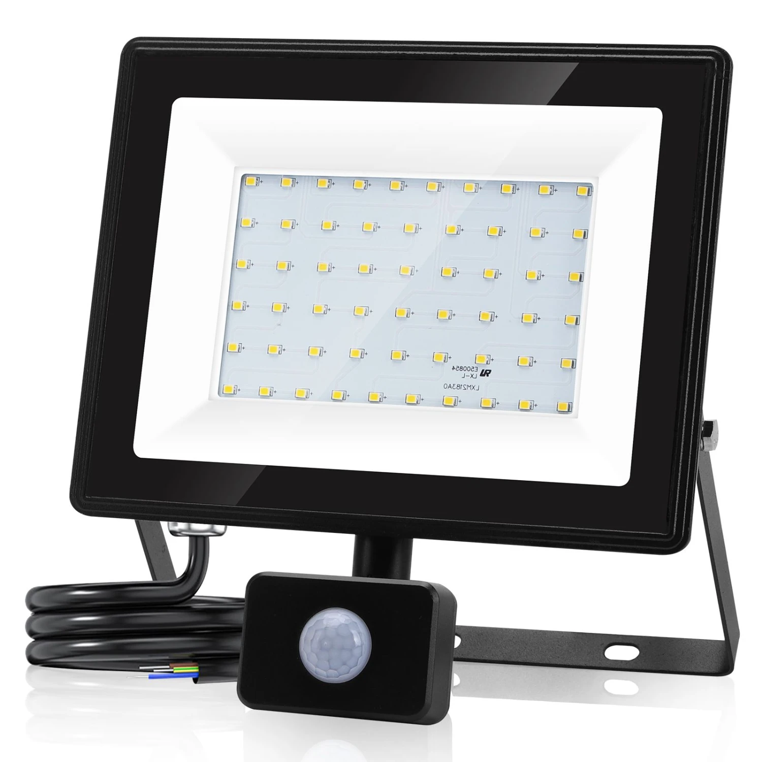 【foco led exterior con 3 modos】los focos led aigostar disponen de sensor de movimientos tiene el modo time, el modo sens y el modo lux.mediante infrarrojos que funcionan durante el día y la noche ajustándolo, así mismo puede ajustar la sensibilidad de detección desde 2 hasta 8 metros. Así mismo también podrá configurar el tiempo de encendido desde 10 segundos a 7 minutos.△【iluminación superbrillante】foco exterior uso del chip led de alta calidad ofrece tres ventajas: alto brillo, alto ahorro de energía y vida larga. 50w foco led exterior puede reemplazar la bombilla incandescente tradicional de 450w, ahorrando más del 85% de energía, ahorrando dinero en su factura de electricidad.los lúmenes muy altos y un ángulo de luz de 120°te proporcionan una buena experiencia de iluminación.△【disipador de calor avanzado】la parte posterior de foco led exterior tiene un diseño de aleta gruesa y un área grande de disipación de calor, lo que significa que puede bajar rápidamente la temperatura y prolongar la vida útil de la lámpara led. Extiende la vida útil del proyector a más de 25,000 horas.△【su nivel de protección ip65】la aleación de aluminio fundido a presión en la tapa de vidrio templado, así como los reflectores son resistentes al calor, la corrosión e impactos. Además su nivel de protección es ip65 lo que garantiza resistencia a la lluvia, nieve y arena.puede brindarle una noche brillante y segura donde sea que esté instalado .△【iluminación profesional al aire libre】el foco led para exteriores tiene un soporte metálico ajustable.el soporte de metal ajustable ensanchado y grueso está montado en el techo, la pared y el piso para mayor estabilidad.colócala en cualquier lugar, incluyendo el garaje, el patio, la entrada o salida de casa, el jardín etc.