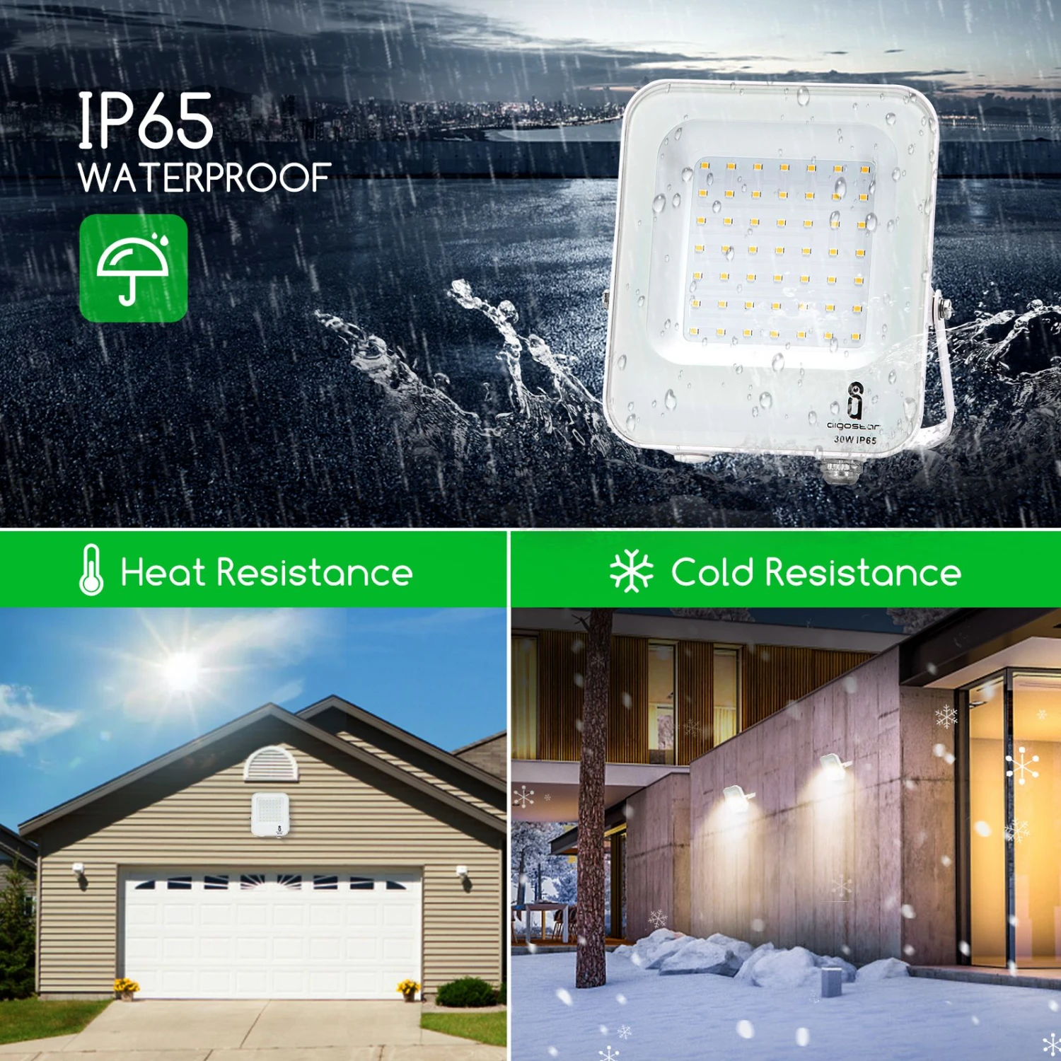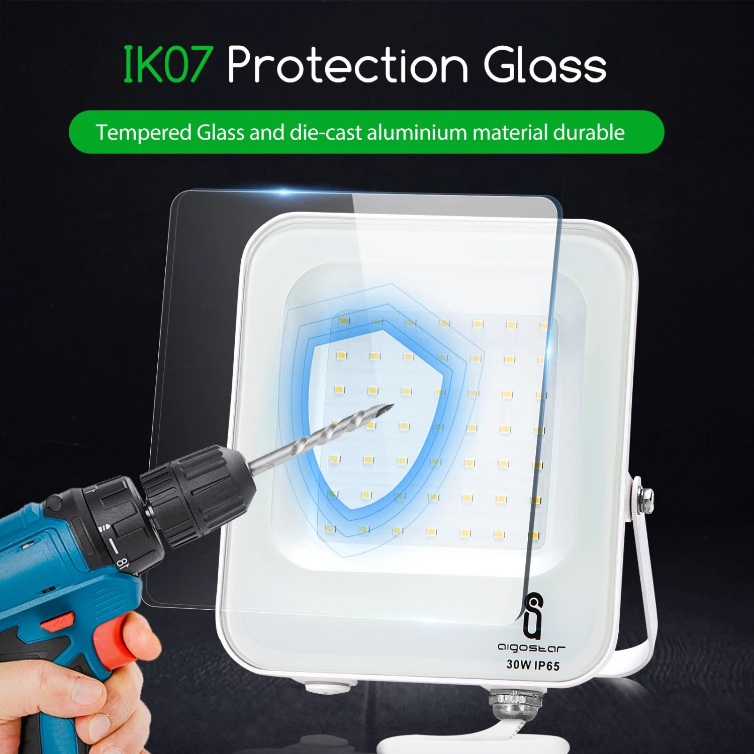 【protección ip65】foco led de exterior ip65 a prueba de agua y polvo, ik07 a prueba de explosiones, para evitar la infiltración de gotas de agua causada por fugas. Temperatura de funcionamiento -20 ℃~40 ℃, se puede utilizar en altas temperatura y ambientes húmedos durante mucho tiempo, es compatible con cualquier ambiente exterior duro, no importa donde se instale, le ofrecerá una noche iluminada y segura.△【alto brillo】foco de pared para exteriores aigostar utiliza chips de led de alta calidad, cuentas de lámparas de alto brillo, larga eficiencia luminosa, salida estable, menos decaimiento de la luz, foco led de 30w, 2700 lúmenes de luz, puede ahorrar más del 85 % en su factura de electricidad. △【rendimiento superior de disipación de calor】el diseño de disipación de calor instalado detrás del foco led dispone de una gran área de disipación de calor y de un diseño de cuerpo ultrafino mejorado para conseguir un efecto de disipación de calor eficiente. Le proporcionará una iluminación segura.△【amplia gama de iluminación】los focos led para exteriores tienen un índice de reproducción cromática de ≥80 ra, un ángulo luminoso de 120°, con soporte ajustable de 180 grados, soporte giratorio, ángulo de irradiación de 350° de ajuste, para lograr una iluminación precisa. Se puede instalar en el techo, en la pared o en el suelo. Se puede utilizar en proyectos de iluminación de interiores y exteriores, incluyendo garajes, patios, entradas o caminos de entrada, jardines, etc.△【materiales de calidad】el foco led aigostar está hecho de aluminio con proceso de fundición a presión, resistente al calor, a la corrosión y a los golpes. El reflector utiliza una cubierta de vidrio templado de alta resistencia con una fuerte transmisión de luz, al agrietamiento y a las altas temperaturas, el aluminio de alta calidad hace que el reflector led sea más seguro y duradero, proporcionándole una buena experiencia de iluminación.