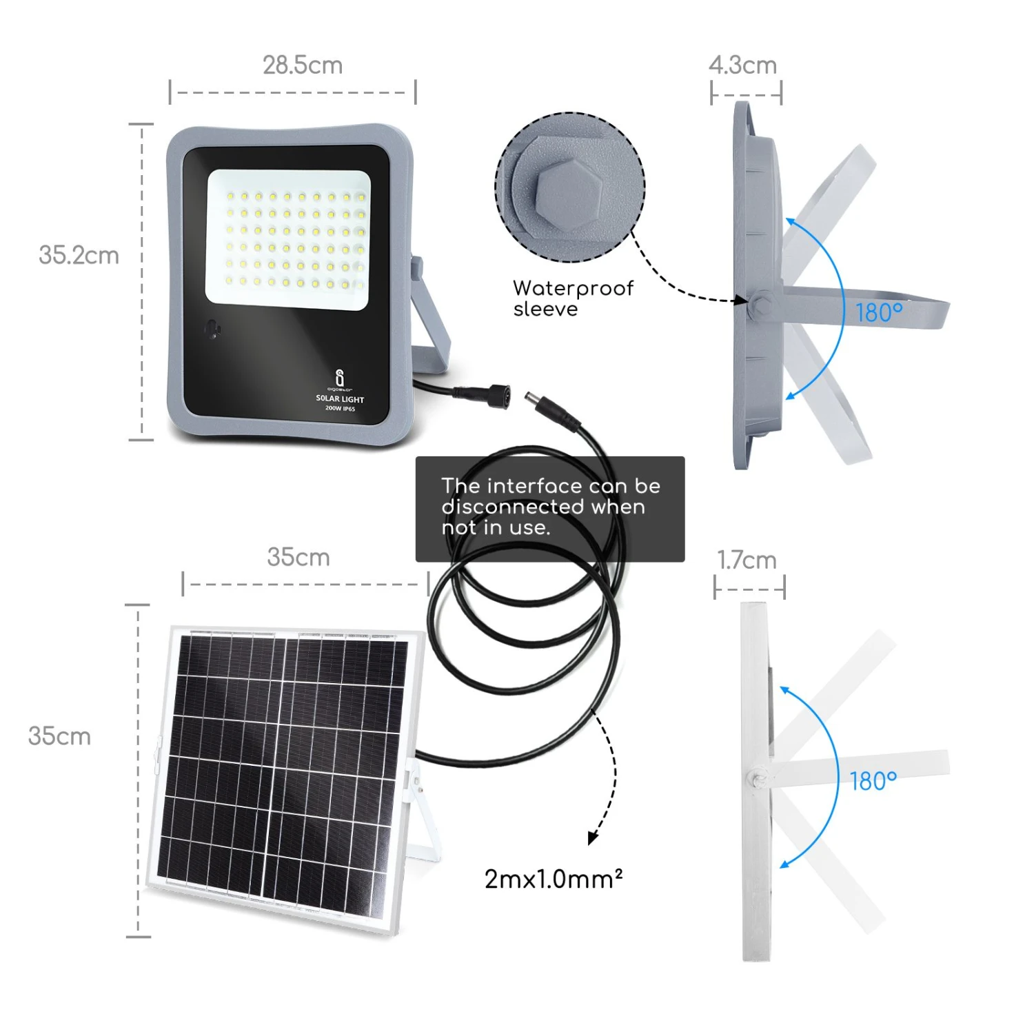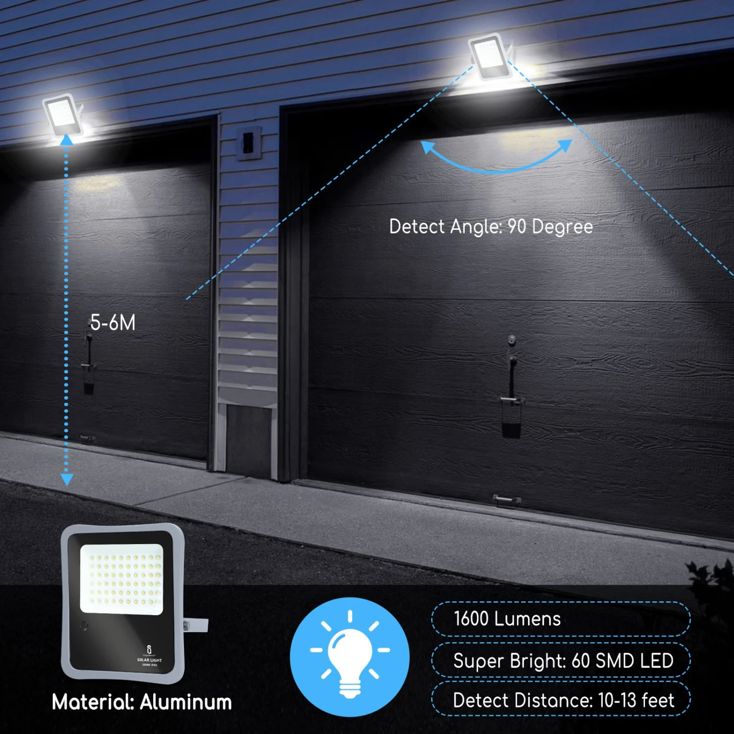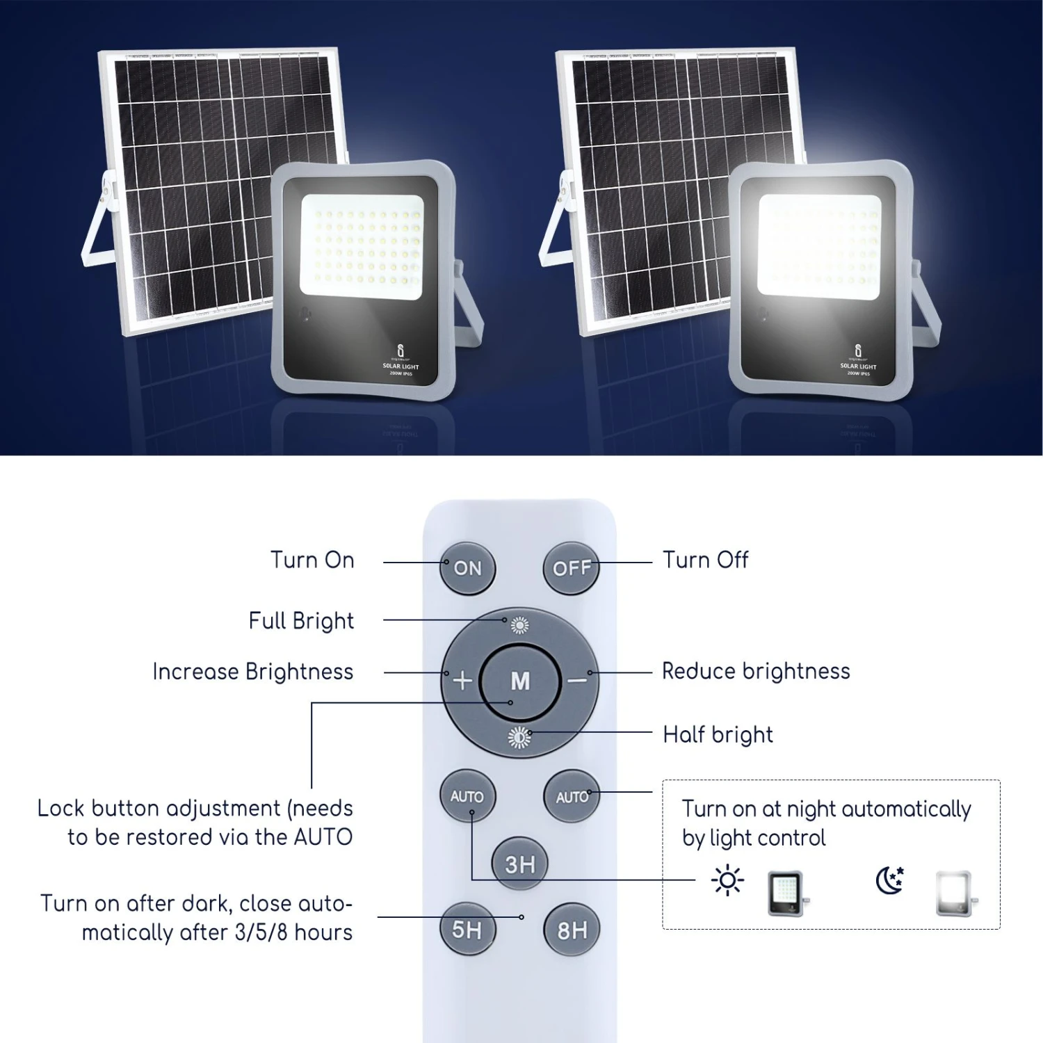 【panneau solaire à haute efficacité 】 le panneau solaire photoélectrique est très efficace, il transforme jusqu’à 23% de l’énergie solaire en énergie électrique et sa batterie lithium-ion de 5000 mah lui permet de fonctionner pendant 10 à 12 heures consécutives s’il est complètement chargé. 【charge à faible luminosité】 ce panneau photovoltaïque aigostar est fait de silicium monocristallin, qui présente de bonnes performances en faible luminosité, un taux de conversion élevé. Il peut être chargé en basse lumière sous les jours de neige et de pluie.il est respectueux de l’environnement et permet d’économiser la facture d’électricité.【technologie led 】 ses 60 lumières led avec des puces améliorées fournissent un éclairage blanc froid de 6500 kelvin et une luminosité allant jusqu’à 1600 lumens pour éclairer n’importe quel coin sans dépenses sur la facture d’électricité. Le projecteur comprend un support de montage mural réglable afin que vous puissiez le placer là où vous le souhaitez. 【 fonctionnement automatique】 le projecteur dispose d’un capteur pour l’aube et le crépuscule qui lui permet de s’allumer automatiquement la nuit et de s’éteindre le jour, sans avoir à le programmer ni à s’en soucier. Il suffira de placer le panneau solaire là où il reçoit la lumière directe du soleil. Vous pouvez également contrôler la marche / arrêt et la minuterie avec la télécommande.【 protection ip65 】 son indice de protection ip65 garantit que le projecteur résiste à la poussière, au vent et à l’eau. Il est hermétiquement scellé, il résistera donc parfaitement aux intempéries qui se produisent en extérieur.
