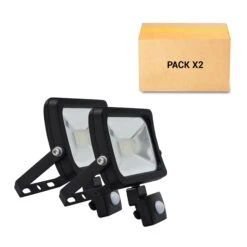 Pack 2X Focos Proyector LED 30W Con Detector De Movimiento PIR Negro IP44