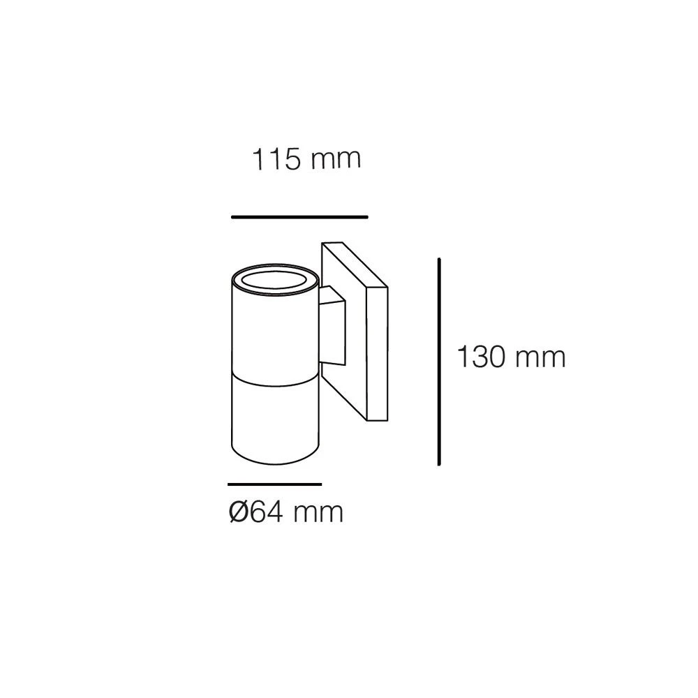 Aplique de exterior cilíndrico con punto de luz hacia abajo. El diseño de este tipo de apliques es perfecto para instalar en paredes al lado de la puerta de la terraza o de entrada como iluminación. Puedes colocar en el aplique una bombilla gu10 con luz cálida, neutra o fría en función de tus necesidades de iluminación.dimensiones: alto 13 cm. Largo 6,40 cm. Ancho 11,50 cm.