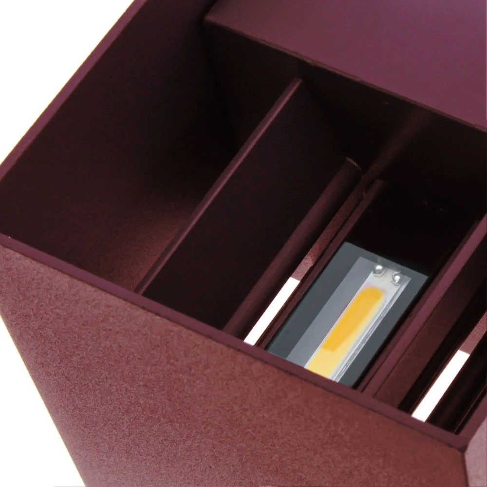 Aplique de pared de color marrón óxido leva. Iluminación led de tono blanco neutro proyectada de manera directa e indirecta. Puedes ajustar el ángulo de apertura de cada luz creando diferentes iluminaciones en la pared. El acabado marrón óxido del aplique encaja a la perfección en urbanizaciones y garajes.dimensiones: alto 10 cm. Largo 10 cm. Ancho 10 cm.