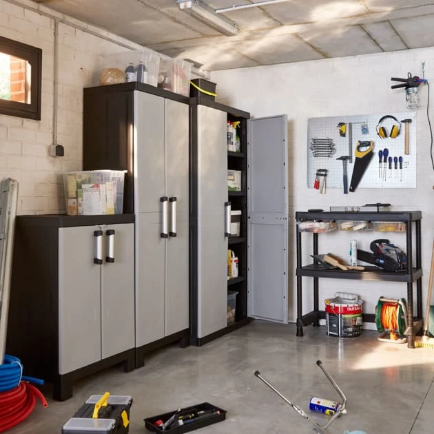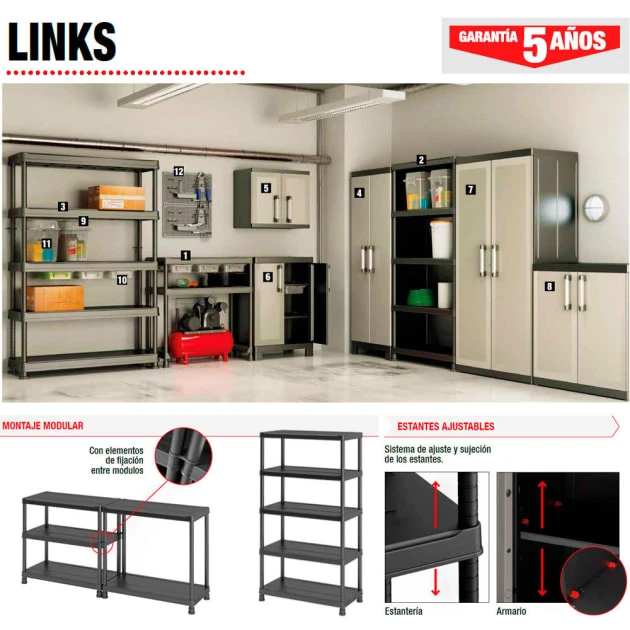 Incluye: 2 patas de nivelaciónpara suelos irregulares. Guías para cajas de plástico a fin de añadir espacio de almacenamiento adicional.