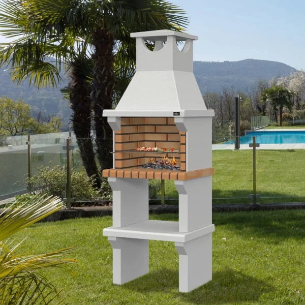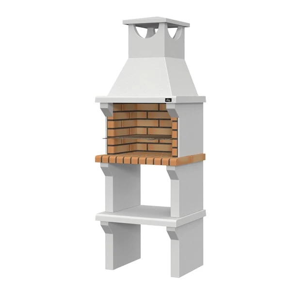 Barbacoa de obra de diseño rústico, fabricada en ladrillo amarillo y hormigón. Incluye parrilla y una repisa de hormigón para colocar alimentos o utensilios. El cocinado con carbón es rápido de usar y dará gran sabor a tus platos. Cocinar en el exterior es la mejor opción para disfrutar de buenos momentos en familia y con amigos.La salida de humos en forma de campana y fabricada en hormigón filtrará el humo de la forma adecuada.De montaje modular es necesario mortero refractario para su instalación.Compatible con base de hormigón para barbacoa