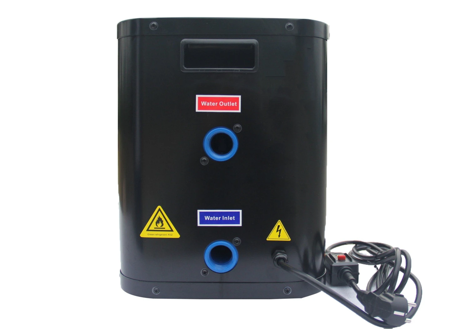 Bomba de calor para piscina de 4 kw ideal para piscinas elevadas, spas, jacuzzis y piscinas pequeñas. Se instala muy fácilmente, sin by-pass. Solo tiene que conectar la tubería de agua, enchufar y listo. Su tamaño compacto las hacen ideales para piscinas elevadas, spas y jacuzzis y gracias a su reducido peso podrá ponerla y quitarla en cualquier momento. Gas r32, más eficiente y ecológico. Intercambiador de titanio, apta para agua salada.