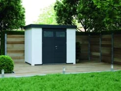 CASETA METALICA BIOHORT JARDIN NEO 4D DOBLE PUERTA COLOR GRIS OSCURO