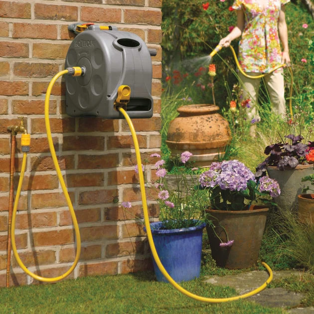 Modelo: Enrollador de manguera.Medidas: – Producto: Longitud 35,4 x ancho 25,3 x alto 38,4 cm. – Manguera: Ø12,5 mm. Longitud 25 m.Material: Plástico.Color: Gris y amarillo.Montaje: En pared.Marca: Hozelock.Garantía: 5 años.Incluye: 25 m de manguera multiuso Hozelock, conector de grifo roscado, conectores de extremo de manguera y una boquilla….