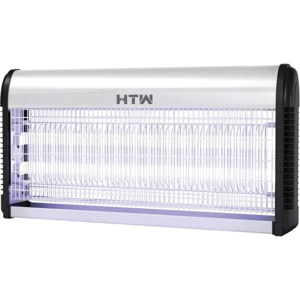 Lámpara UV anti mosquitos HTW. Capaz de atrapar fácilmente insectos voladores de manera eficaz, segura y silenciosa. Perfecta para colocar en supermercados, grandes superficies, bares y restaurantes.Área de alcance: 150 m2.Lámpara: T8 2x18W.Tipo de lámpara: Tubo fluorescente LED UV.Vida útil: 5.000-8.000 horas.Balastro: Magnético.Cable – 3×0.75 – 1m.