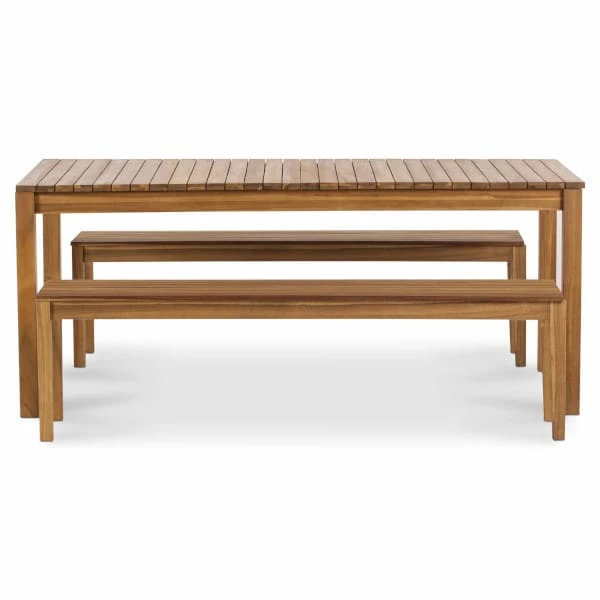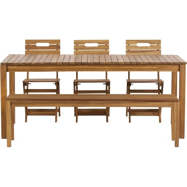 La mesa de jardín de madera rectangular Denia es ideal para disfrutar del exterior en familia o amigos ya que puede albergar hasta 6 personas cómodamente. Está fabricada en madera de acacia de 22 mm de espesor, respetuosa con el medio ambiente.Esta mesa de jardín combina con cualquier espacio por su aspecto natural. La serie Denia se caracteriza por su aspecto funcional y modular, gracias a que la mayor parte de sus componentes son plegables, y por consiguiente se guardan con mucha facilidad. Esto lo convierte en un conjunto cuyo mantenimiento es mínimo ya que puede mantenerse a resguardo cómodamente. Su cuidado es el básico necesario de cualquier producto que se utilice en exterior, y su transporte es muy fácil gracias a la plegabilidad de sus componentes.Esta serie posee productos con diferentes medidas que se adaptan tanto a grandes espacios al aire libre, como a jardines más acogedores. Su principal componente es la madera de acacia, un material conocido por tener una buena resistencia en el exterior y que hace que su jardín gane en calidez, diseño y estilo.Ver la serie Denia