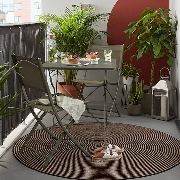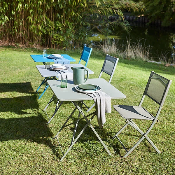 Mesa de jardín plegable en color azul mate de la colección Saba, un color muy veraniego para disfrutar de buenos momentos en tu terraza. Fabricada en acero, es resistente y ofrece una garantía de 5 años. Adecuada para 2 comensales, con unas medidas de alto 70 x ancho 70 x fondo 70 cm.Esta mesa cuadrada de nuestra gama Saba ha sido diseñada con un aspecto bistró y es ideal para espacios reducidos. Es una mesa de jardín muy ligera y plegable, por lo que puede guardarla fácilmente cuando sea necesario.Puede combinarla con diferentes colores de nuestras Sillas Saba para una apariencia única y elegante.