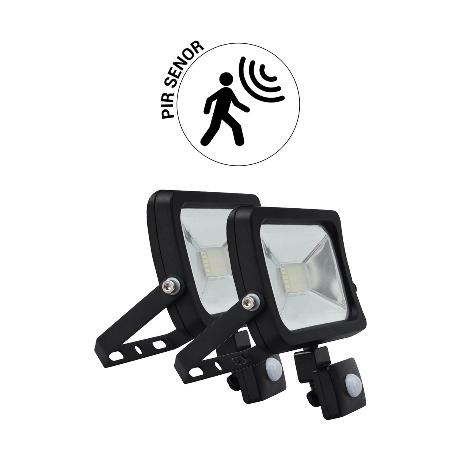 Pack 2X Focos Proyector LED 30W Con Detector De Movimiento PIR Negro IP44