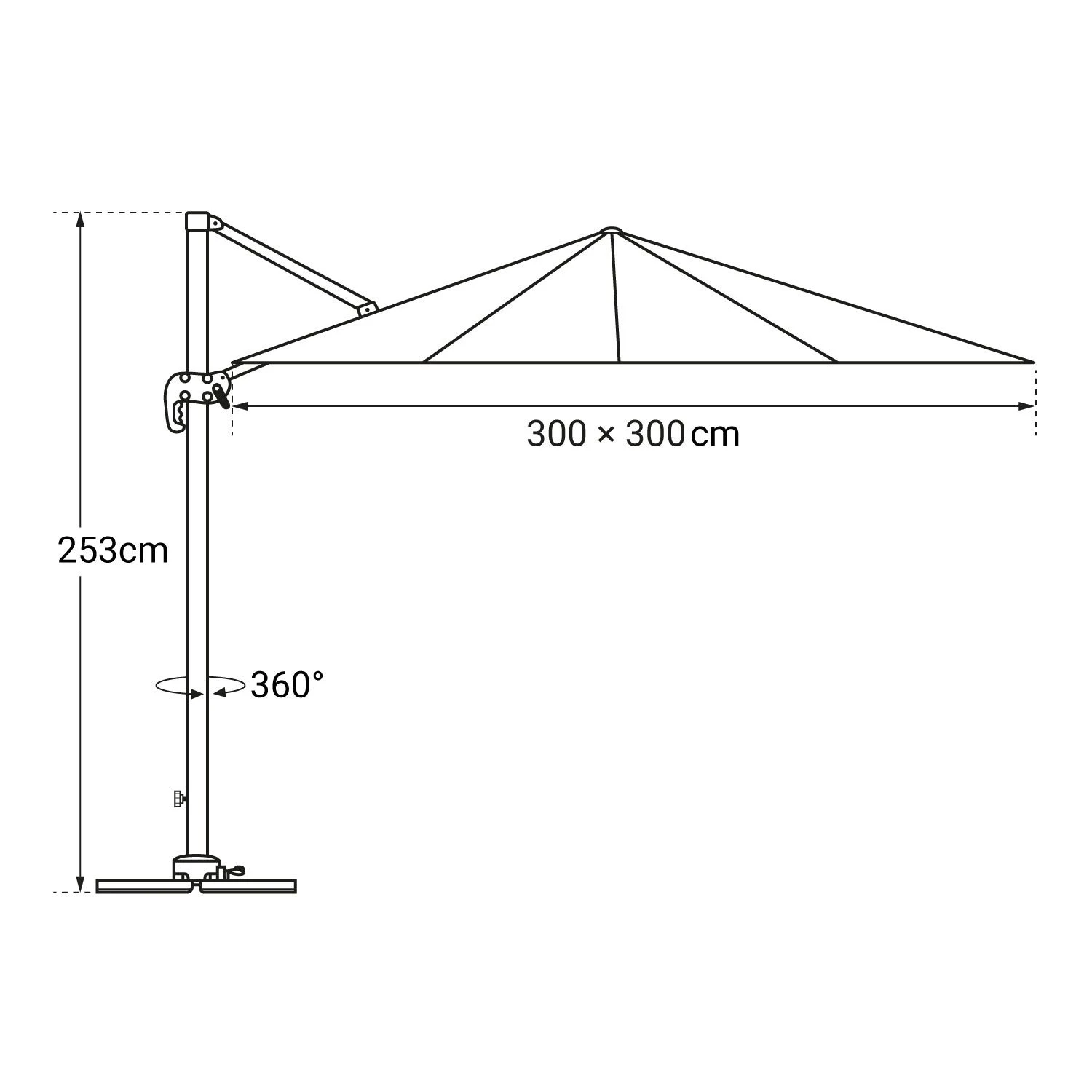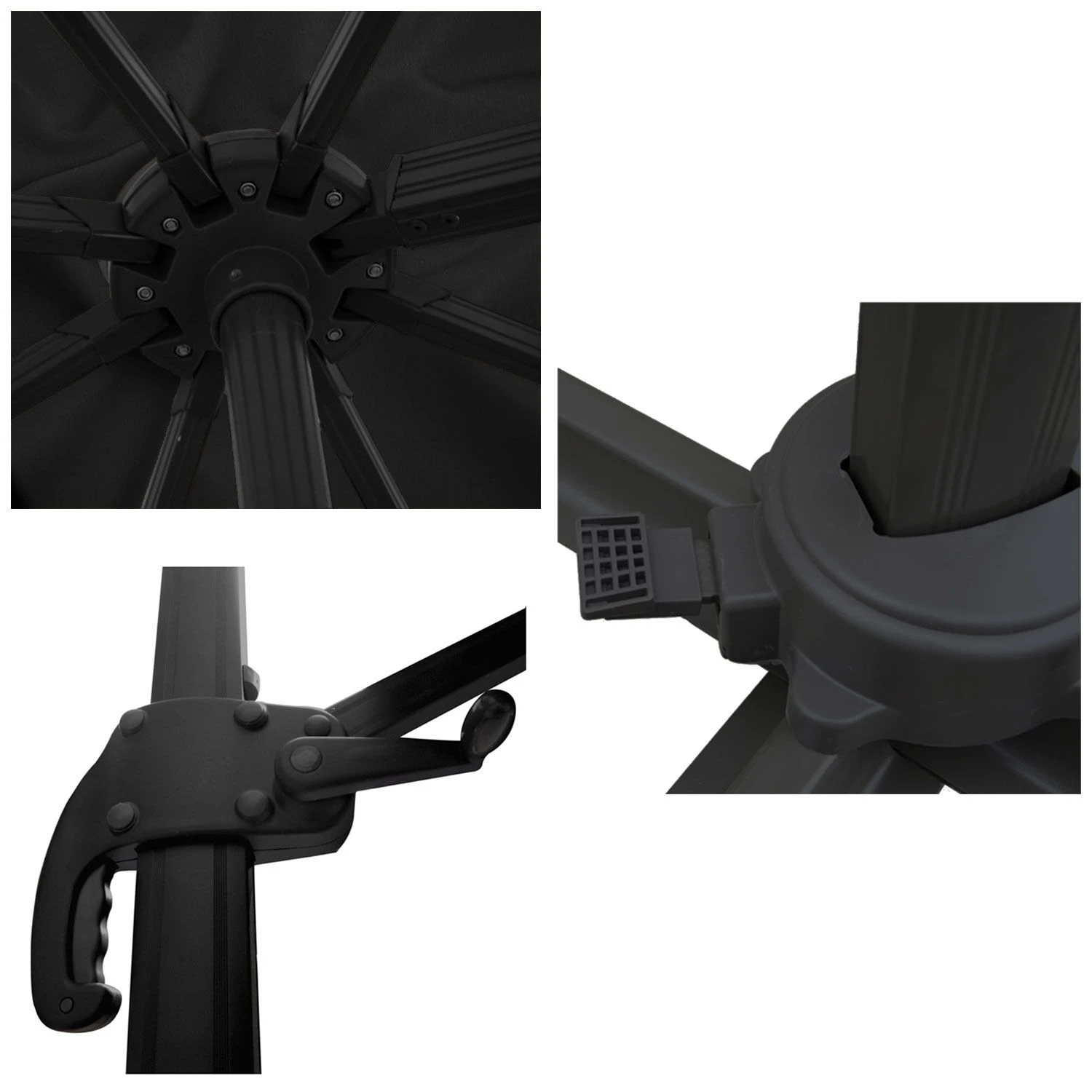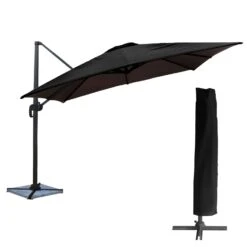 descripción :disfrute de momentos de convivencia con total confianza con la sombrilla molokai. Inclinable y giratoria, le protegerá perfectamente de los rayos del sol. Con una gran envergadura y un tejido de alta densidad tratado contra los rayos uv, cuidará de sus invitados, incluso de los instalados al final de la mesa. Además, su diseño y su aspecto elegante harán aún más agradables los días soleados. Recuerde añadir placas de lastre para mantener la sombrilla descentrada firmemente en su sitio.detalles del producto :dimensiones :- paraguas: l 3 × a 3 × a 2,53 m- ballenas: p 24 × l 14 × grosor 0,9 mm- mástil: l 77 × a 53 × a 1,8 mm- brazo articulado: p 40 × an 25 mm- soporte: l 100 × a 100 × a 6,5 cm- cubierta: ø 47 a 65cm (de arriba a abajo) × h 253cmmateriales :- lona: poliéster, 200 g/m².- mástil y barra: aluminio- pie: aluminio- ballenas: aluminio- funda: poliéster, 140g/m². colores :- lona: negra- mástil, barra, costillas y pie: antracita- cubierta: negra informaciones complementarias :- tipo de parasol : deportado- forma de la lona : cuadrada- número de varillas: 8- lona y funda hidrófugas- ventilación en la parte superior- sistema de apertura/cierre: manivela- sistema de inclinación: manivela- sistema de rotación: pedal- rotación: 360- forma del pie: cruz- protección solar: tratamiento uv20- para montar (instrucciones incluidas)- garantía: 2 añosentrega :la sombrilla deportada molokai contiene: 1 sombrilla, 1 fundaentrega a domicilio, en la parte inferior del edificio – entrega en 1 paquetepaquete 1: l 255 × an 38,5 × al 15cm – peso bruto: 23,4kg/peso neto: 20kg