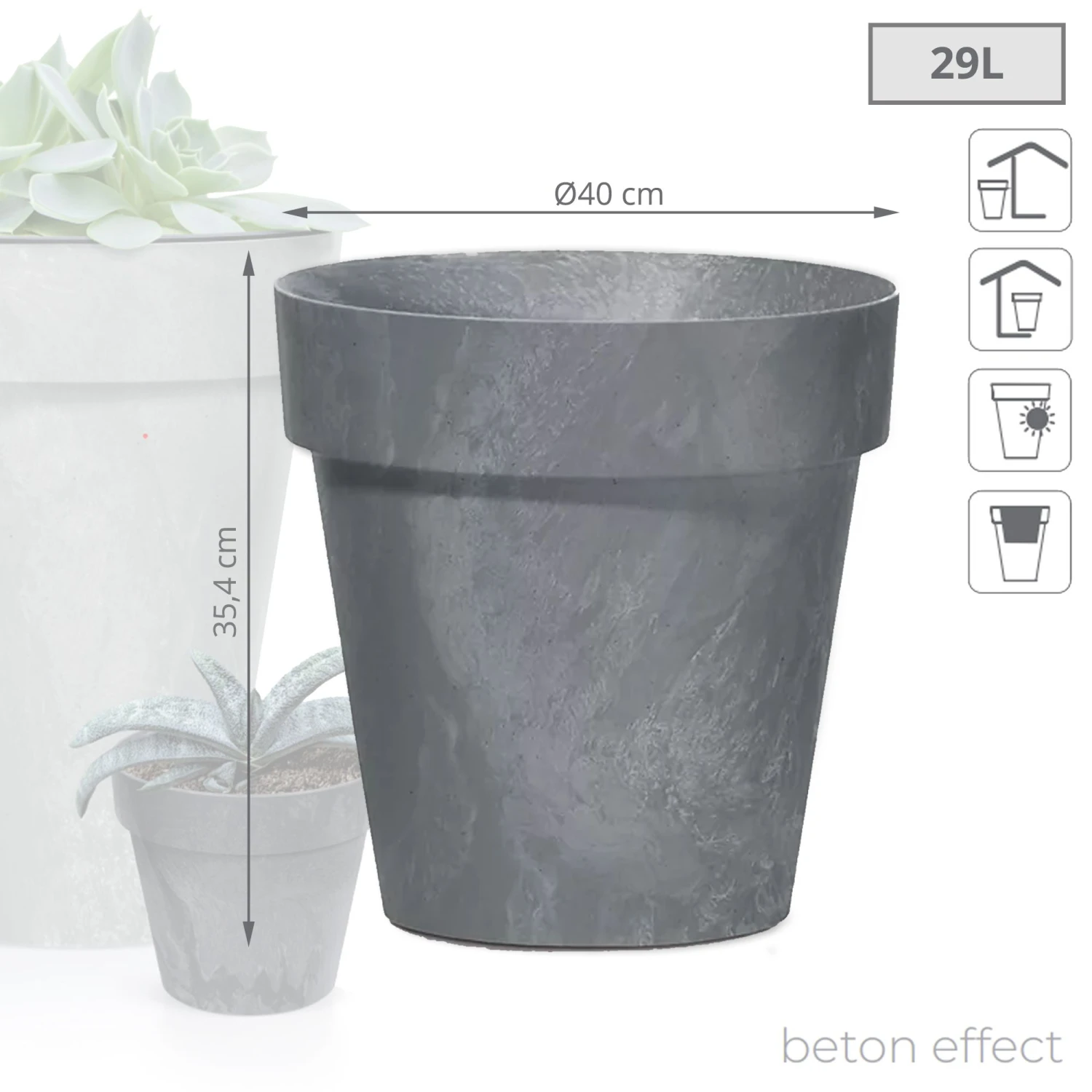 Prosperplast Maceta CLASSIC 23L., 400x400x340, Color Antracita