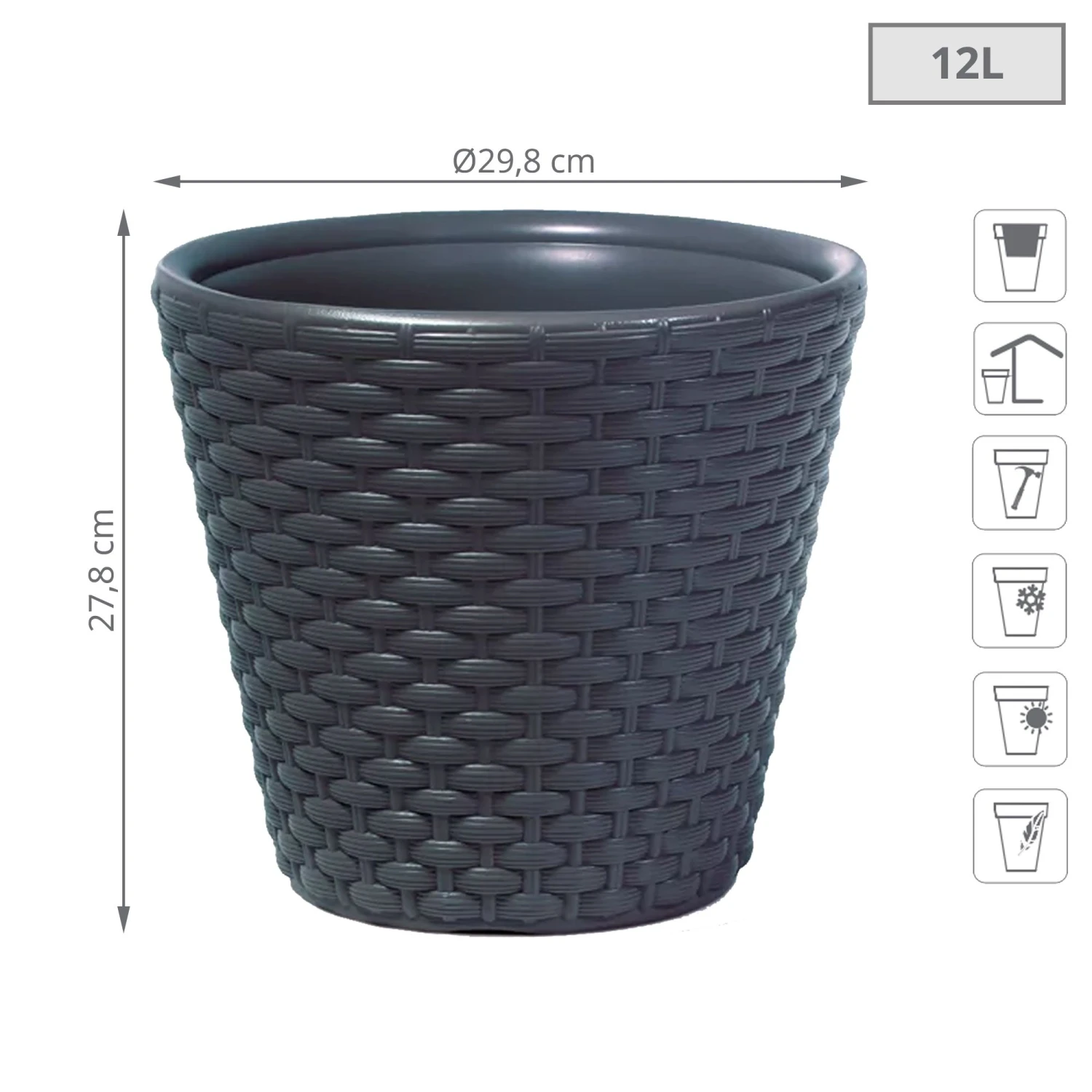 Prosperplast Maceta RATO 12L., 298x298x278, Color Antracita
