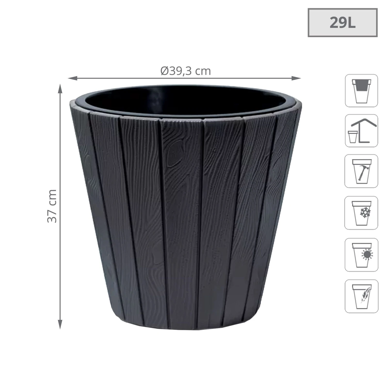 Prosperplast Maceta WOODE 29L., 393x393x370, Color Antracita
