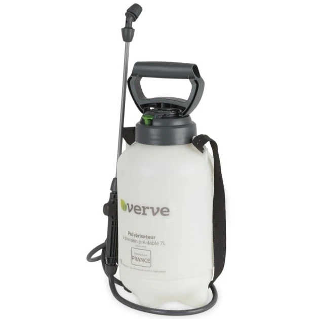 Modelo: Pulverizador de bomba manual.Medidas: Longitud 45 x Ø 18 cm.Manguera: Longitud 1,2 m.Material: Polietileno (PE) y polipropileno (PP).Cobertura: 200-1200 m².Presión máxima de funcionamiento: 3 bar.Capacidad: 5 L.Color: Blanco, negro y verde.Marca: Verve.Garantía: 3 años.Componentes ajustables: Boquilla (de chorro recto a rociado fino).Compatible: Agua, insecticidas, pesticidas, fungicidas y otros fertilizantes solubles en agua…Incluido: Boquilla de cono hueco, lanza (40 cm), correa de transporte y manual de instrucciones….
