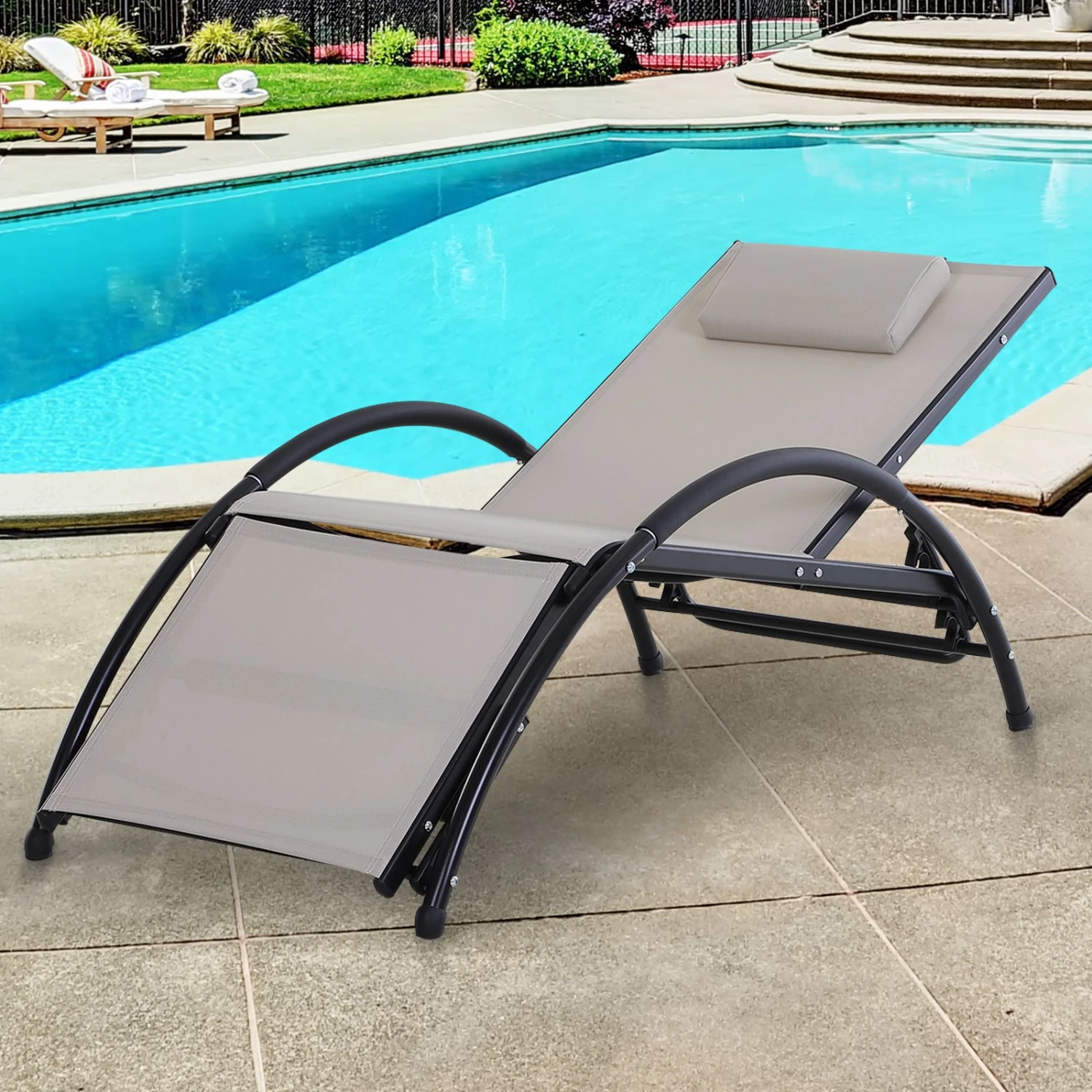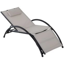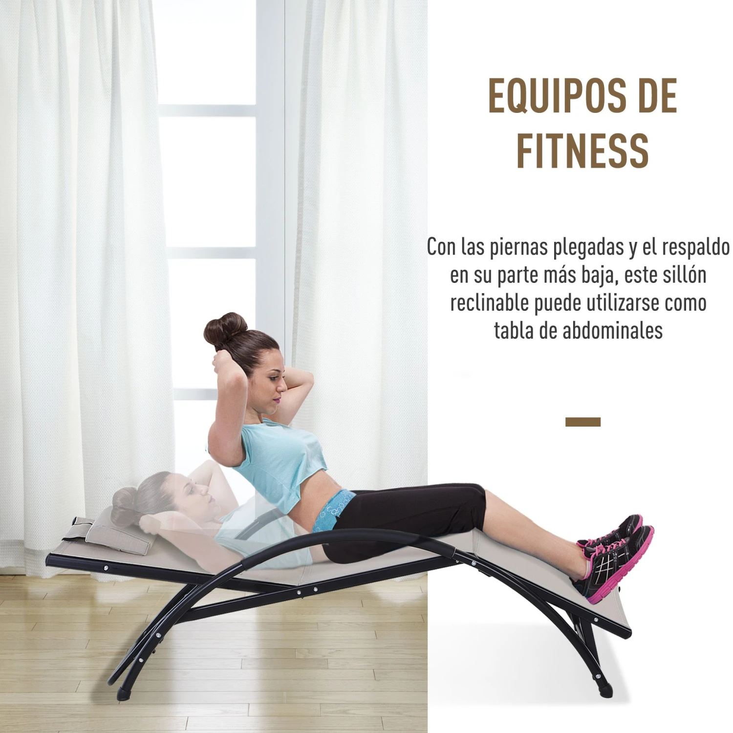 dale un toque moderno y funcional al patio de tu casa con esta bonita tumbona reclinable de jardín de outsunny con reposacabezas. Su respaldo se regula en 5 posiciones diferentes y su reposapiés también lo puedes ajustar en 2 niveles distintos. Incluye un cojín reposacabezas para que tomes el sol o leas tu novela favorita bajo la sombra de una sombrilla de forma cómoda y con un mejor apoyo del cuello y cabeza.características- tumbona de estilo moderno y actual con líneas arqueadas – respaldo reclinable en 5 posiciones diferentes para adaptarse a tus necesidades – reposapiés regulable en 2 posiciones – fabricada con estructura de aluminio resistente y a la vez ligera para mover sin esfuerzo – tejido de textileno repelente al agua y transpirable – perfecta para relajarte en tu propio jardín, en la zona de la piscina o en la terraza – incorpora un cómodo reposacabezas extraíble – al ser regulable se adapta a ti y a la postura que necesites en cada momento – requiere montajeespecificaciones- color: beige – material: aluminio y texteline – medidas totales: 66x152x81 cm (lxanxal) – medidas del asiento: 52,5×58 cm (lxan) – medidas del reposacabezas: 33×18 cm (lxan) – medidas del respaldo: 54×70,5 cm (lxal) – carga máxima: 120 kg – certificaciones: en58112 – referencia: 84b-447bg